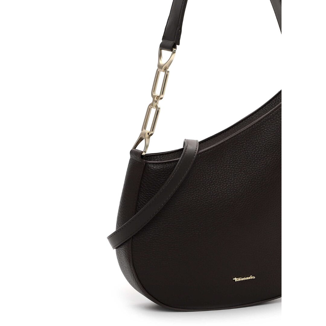 Елегантна дамска чанта Tamaris в тъмнокафяв цвят, изработена от висококачествена еко кожа с фина зърнеста структура. Моделът впечатлява с изчистен силует и стилна дръжка, украсена със златисти метални елементи. Подходяща както за ежедневието, така и за по-официални визии, тя добавя изтънченост и модерен акцент към всяко облекло.