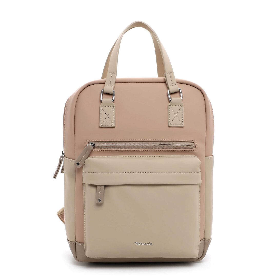 Модерна дамска раница Tamaris в нежна комбинация от бежово и розово. Изработена от висококачествени материали с меко покритие и стилен дизайн. Разполага с предни джобове с цип и практична вътрешна организация, осигуряваща удобство в ежедневието. Перфектен избор за съвременната жена, която цени комфорта и изискания стил.