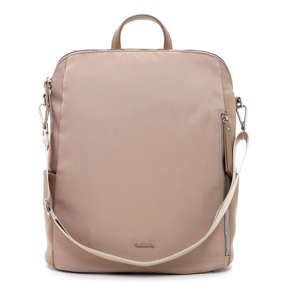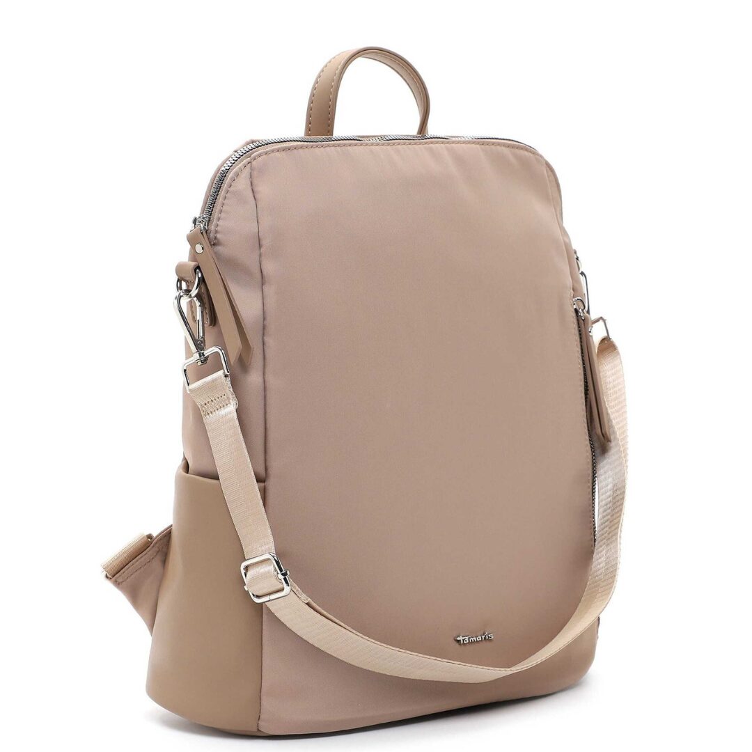 Модерна и практична дамска раница Tamaris в нежен бежов цвят. Изработена от висококачествени материали, тя впечатлява с лекота, удобство и стилен минималистичен дизайн. Моделът може да се носи и като чанта благодарение на регулируемата презрамка, а просторното вътрешно отделение я прави идеален избор за ежедневието.