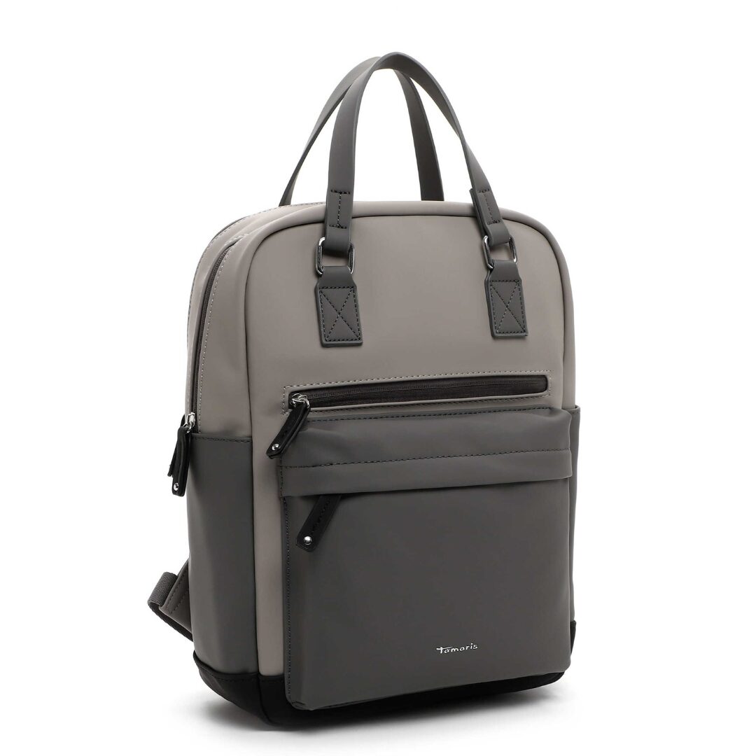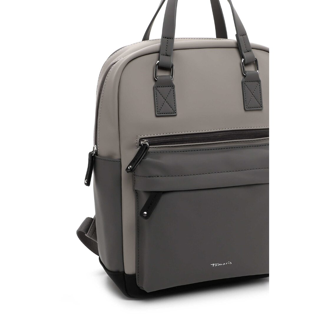 Стилна дамска раница Tamaris в елегантна комбинация от сиво и графитено. Изработена от висококачествени материали, тя съчетава модерен дизайн и практичност. Разполага с предни джобове с цип и удобно вътрешно пространство за всичко необходимо през деня. Перфектен избор за динамичния градски стил и ежедневен комфорт.