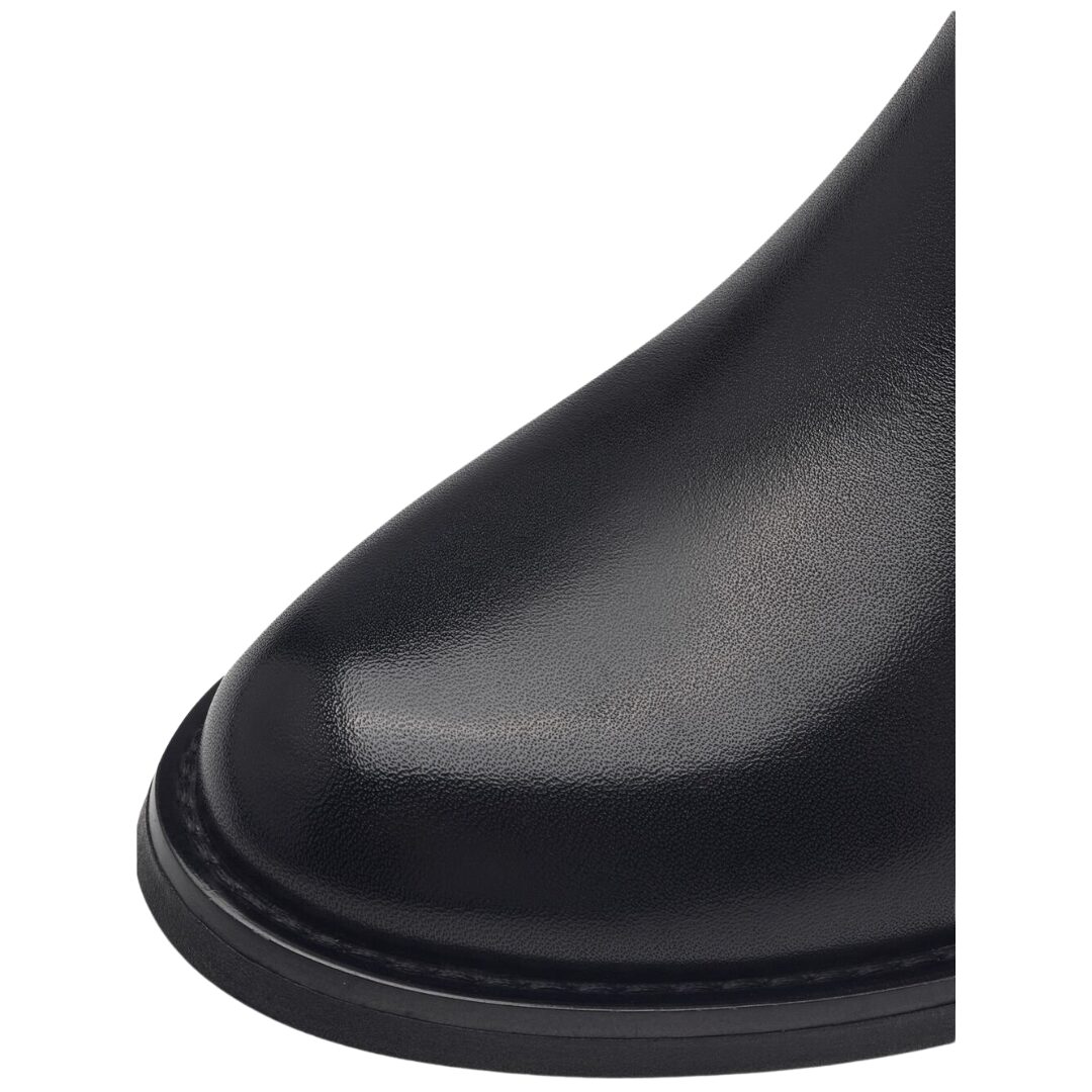 Тези черни ботуши Tamaris впечатляват с изчистена линия и безупречна елегантност. Комбинацията от гладка кожа и еластична горна част осигурява перфектно прилепване към крака и подчертава силуета с изтънчен стил. Ниското токче и меката стелка гарантират удобство през целия ден, а минималистичният дизайн ги превръща в универсален избор за всякакви поводи — от ежедневието до по-официални визии. Модел, който съчетава класика и модерност в едно — символ на женствена простота и увереност.