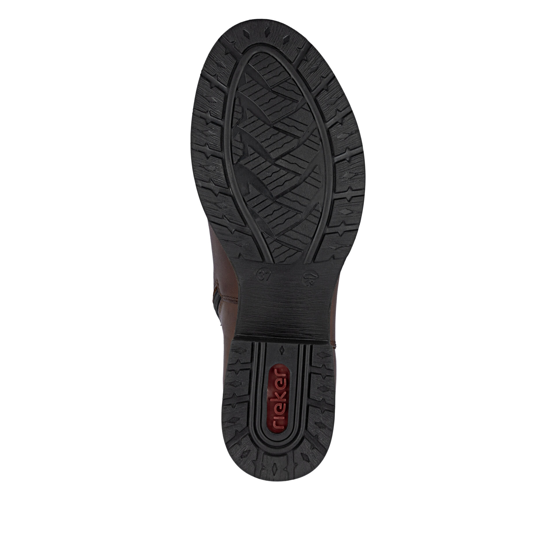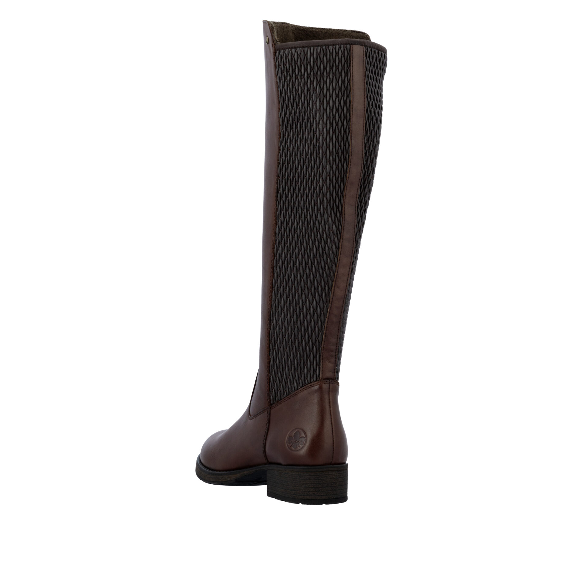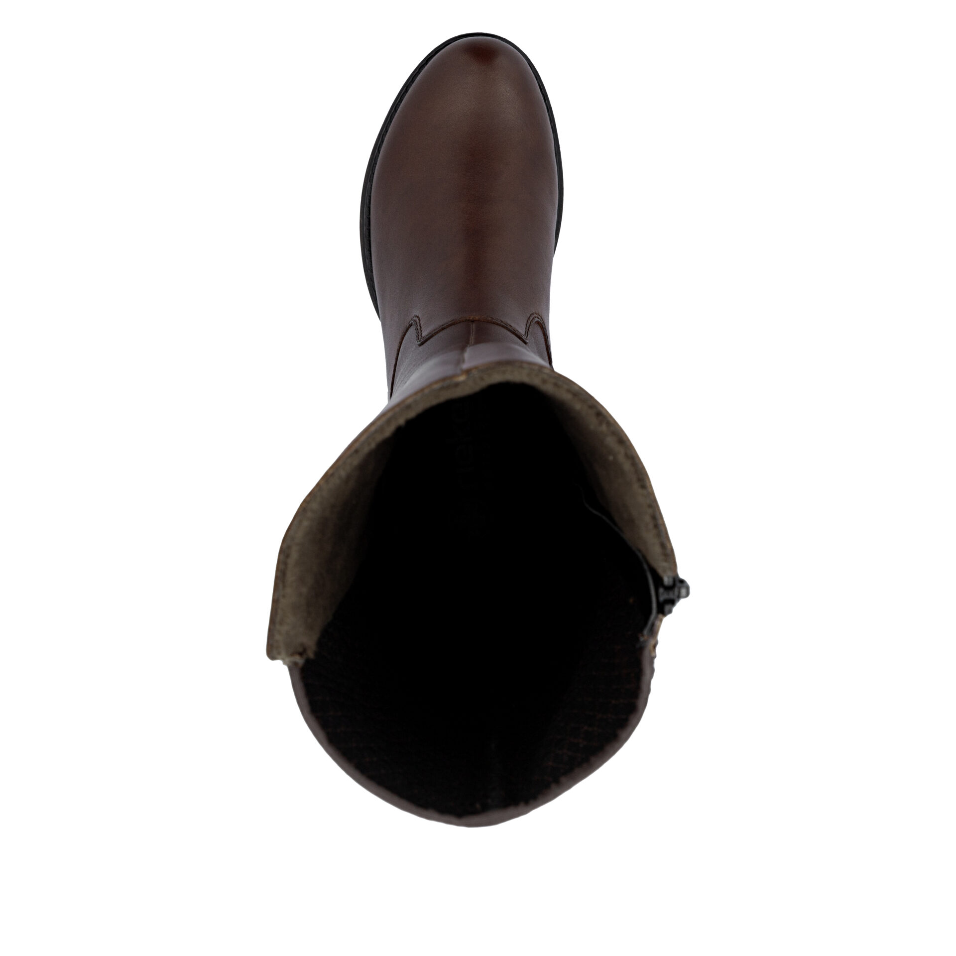 Тези дамски високи ботуши Rieker съчетават стил, комфорт и практичност в един завършен модел, идеален за есенно-зимния сезон. Изработени от висококачествена гладка кожа в тъмнокафяв цвят, те имат изчистена линия и удължен силует, който подчертава крака и придава елегантно излъчване.