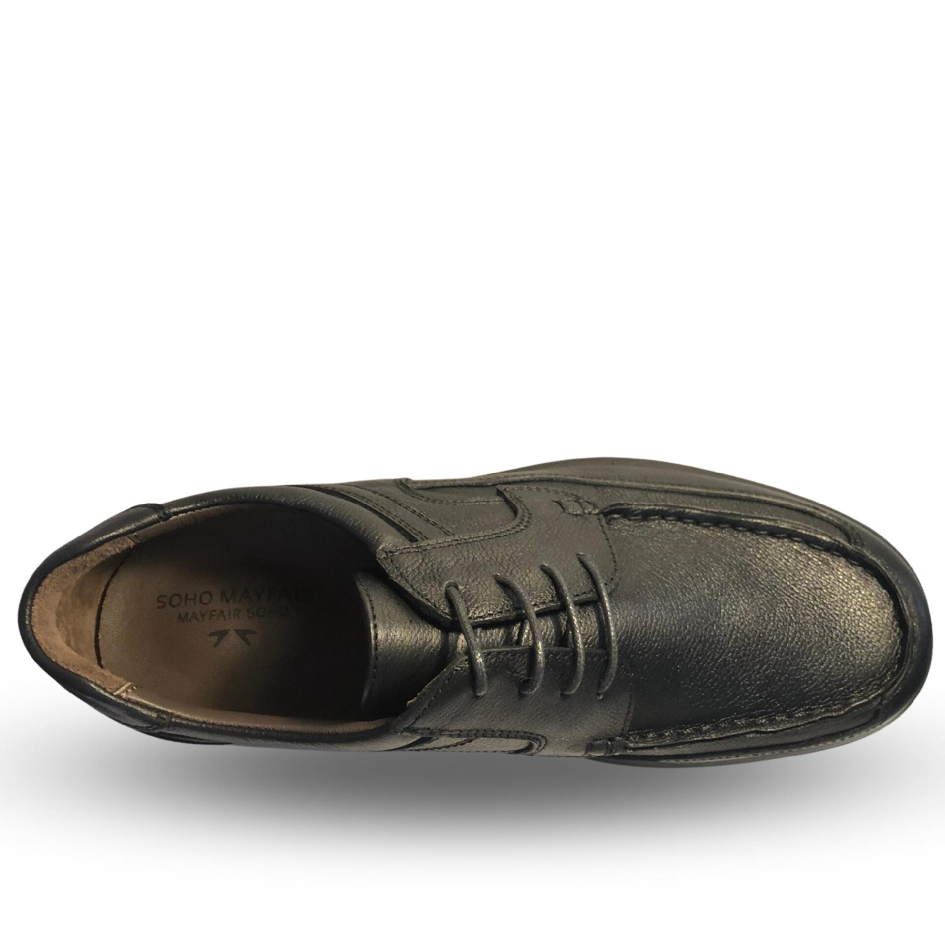 Мъжки обувки с връзки на марката Soho Mayfair. Моделът е изработен изцяло от естествена кожа. Дебелината на подметката в задната част е 2.5 см. Моделът е снабден с Antishokk система, която намалява напрежението стъпка по стъпка с повече от 50%. Това облекчава гръбначния стълб, междупрешленните дискове и ставите.