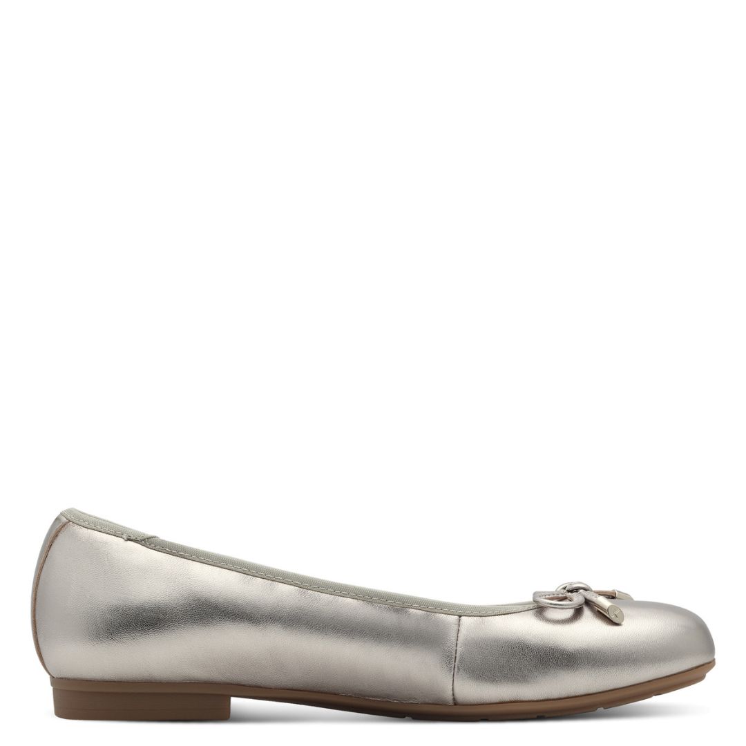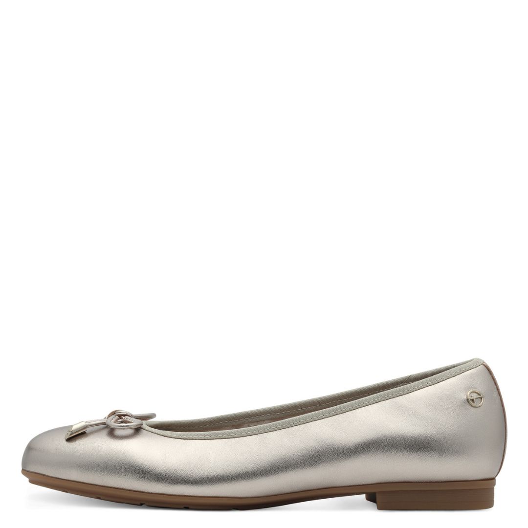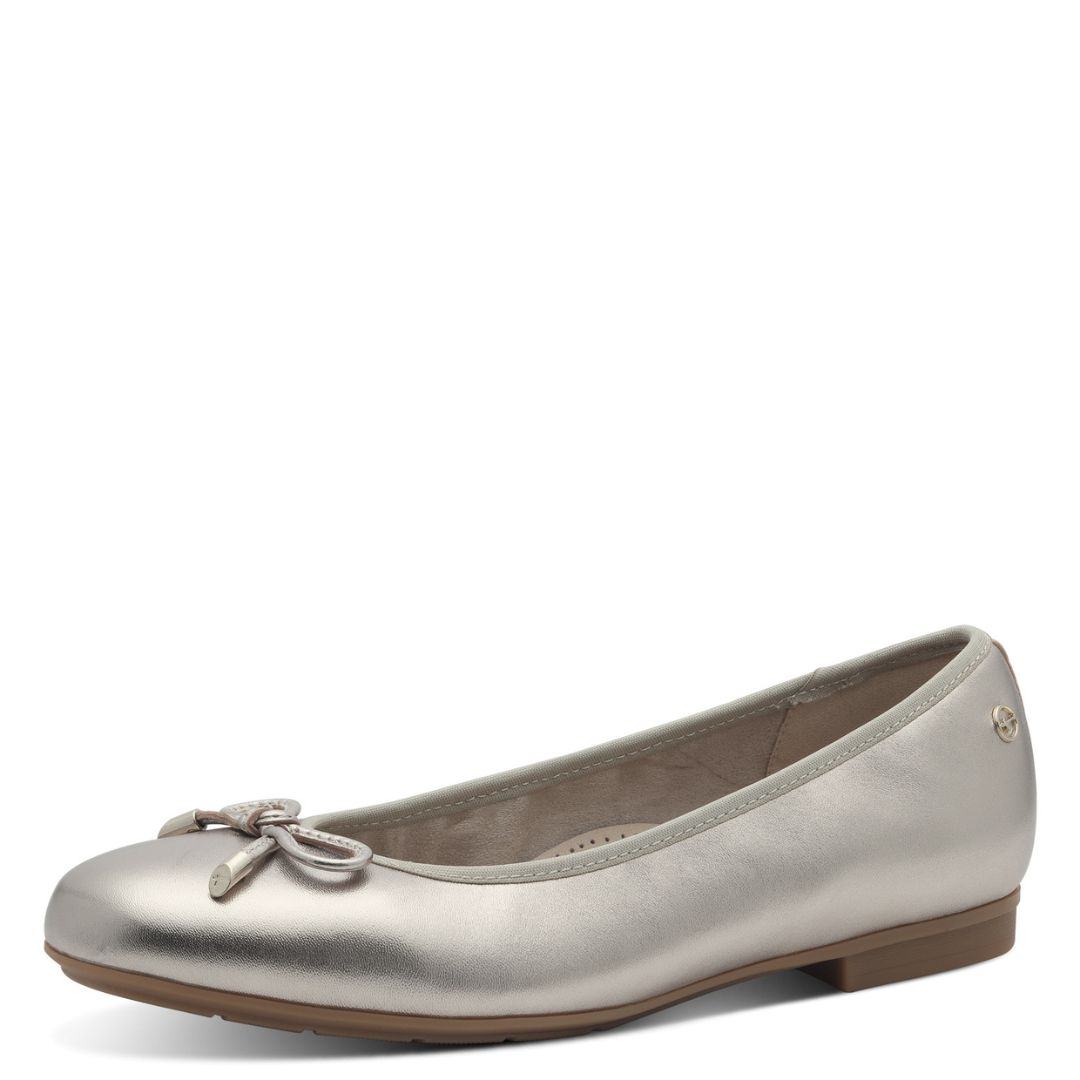 Дамски равни обувки от немската марка Tamaris. Външната част е изработена от естествена кожа. Вътрешната част се състои от естествена и изкуствена кожа. Стелките са с мемори пяна. Височината на подметката е 1.5см.