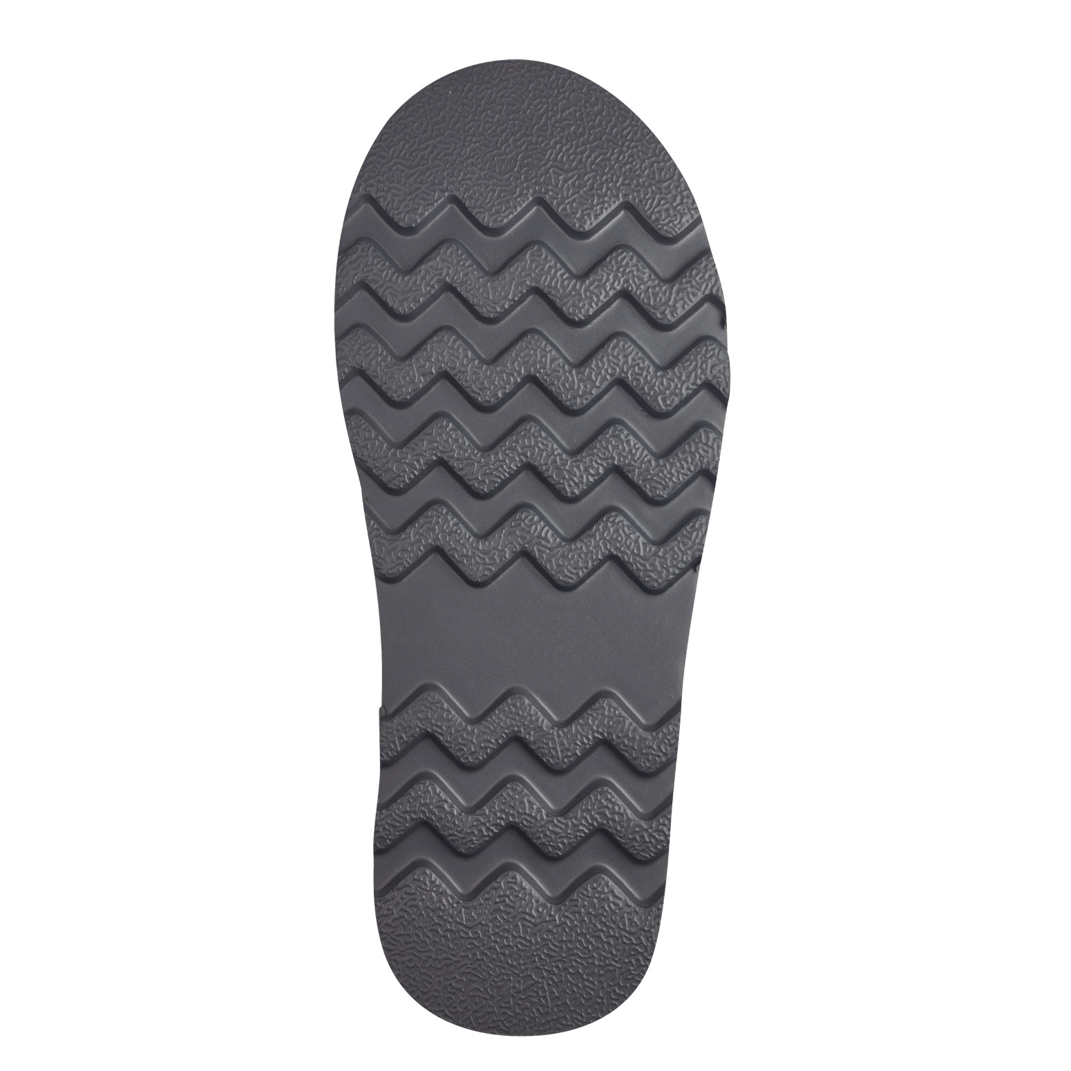 Външната част е изработена от естествен велур. Вътрешната част е изработена от антибактериален текстил. Подметката е с отлична анатомична форма. Дебелината й в задната част е 4см.