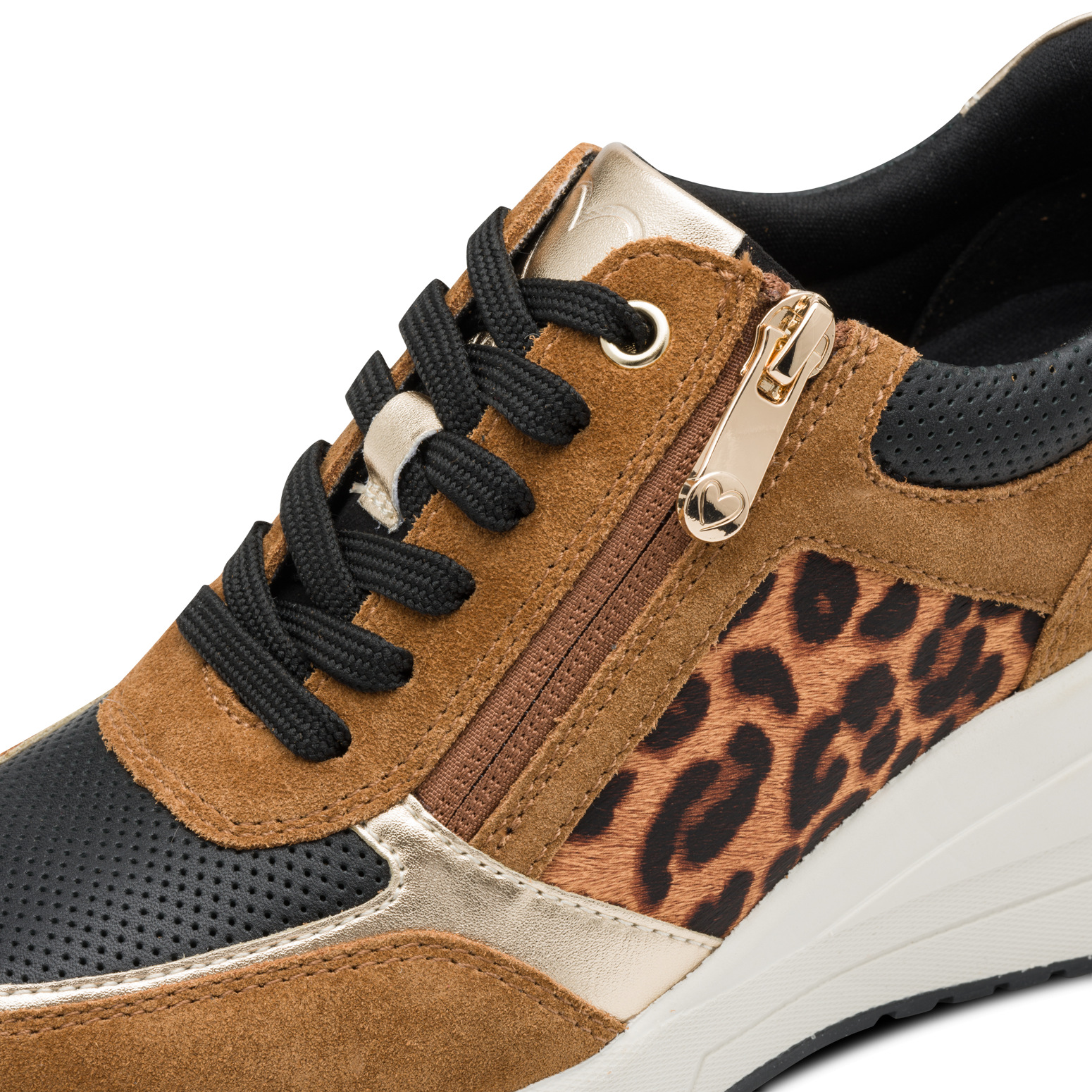 ✔ Дизайн: Атрактивна комбинация от кафяво, черно и златисто с животински принт за стилна и дръзка визия.