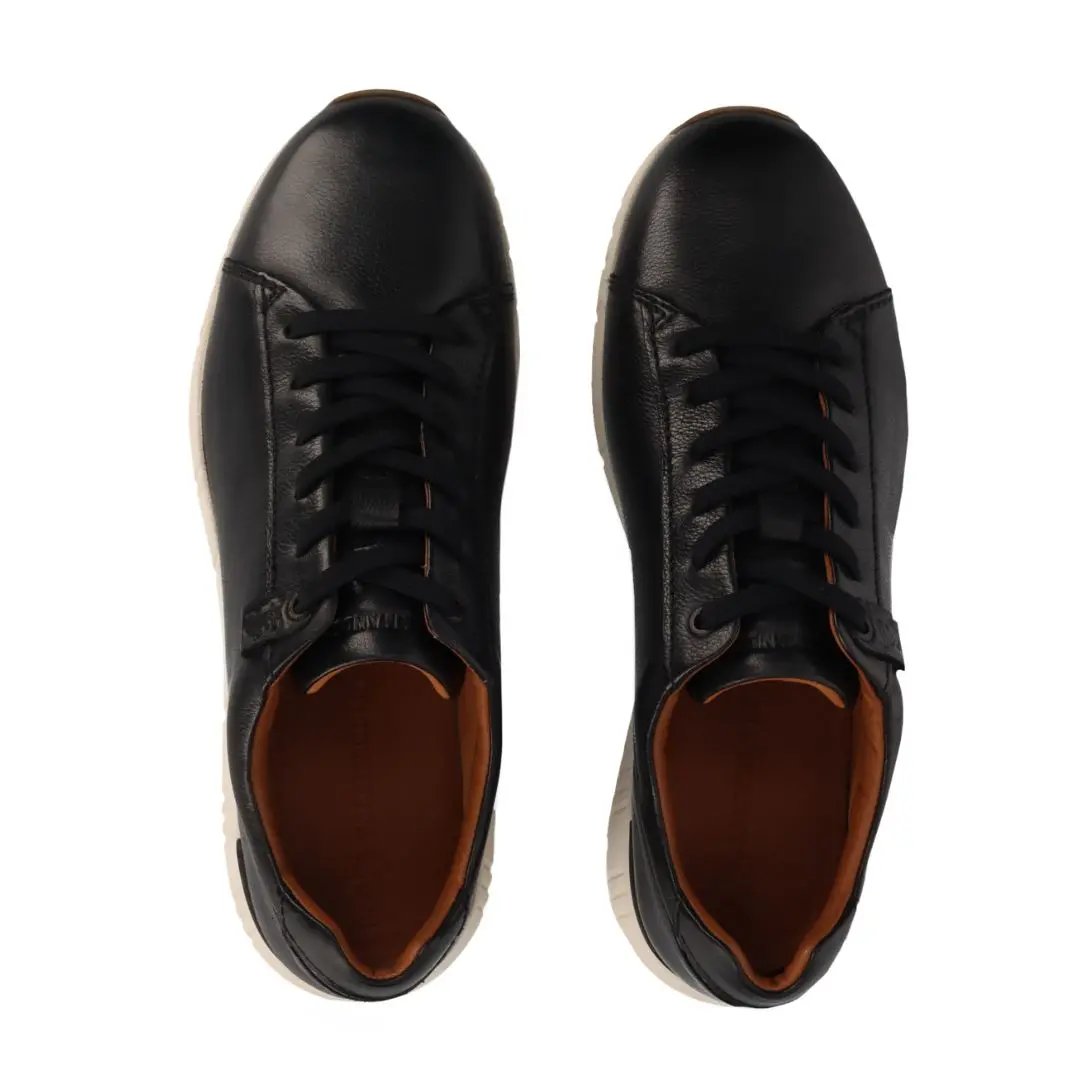 Дизайн: черен цвят с модерна бяла подметка – баланс между спортна визия и елегантен стил.