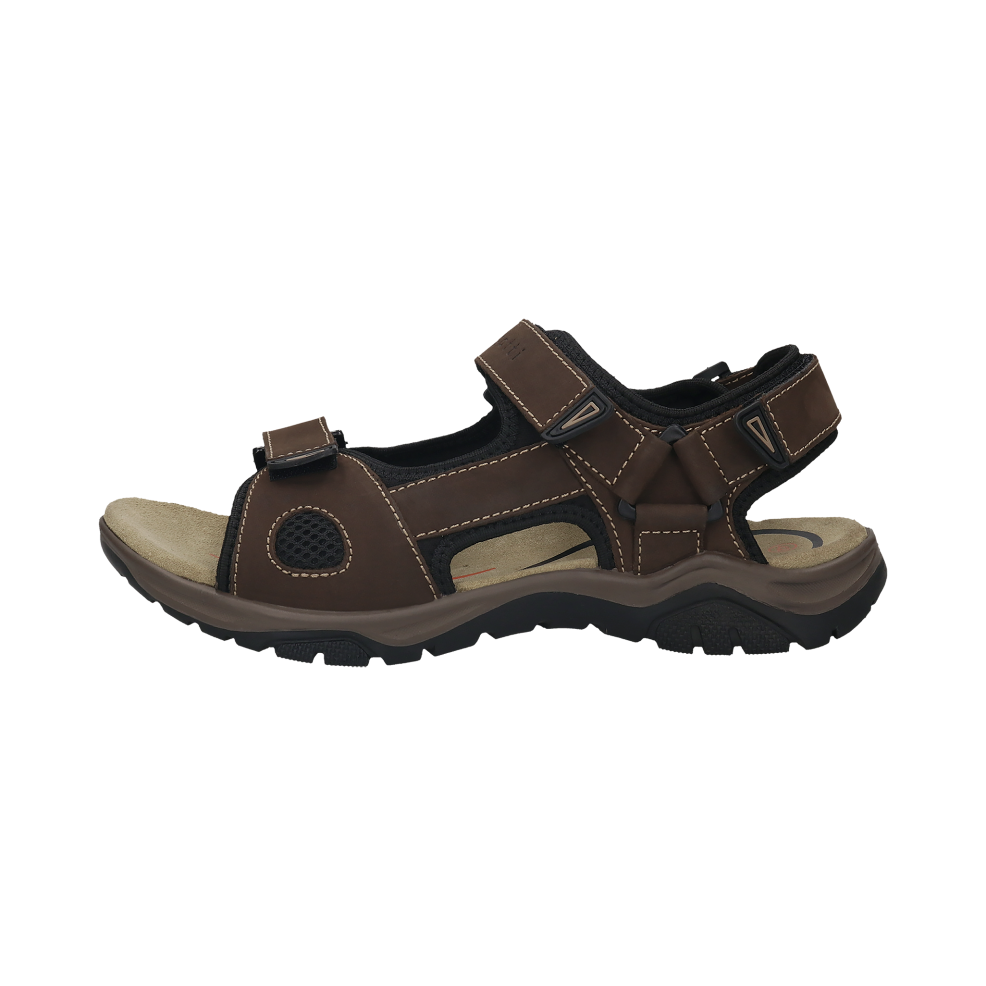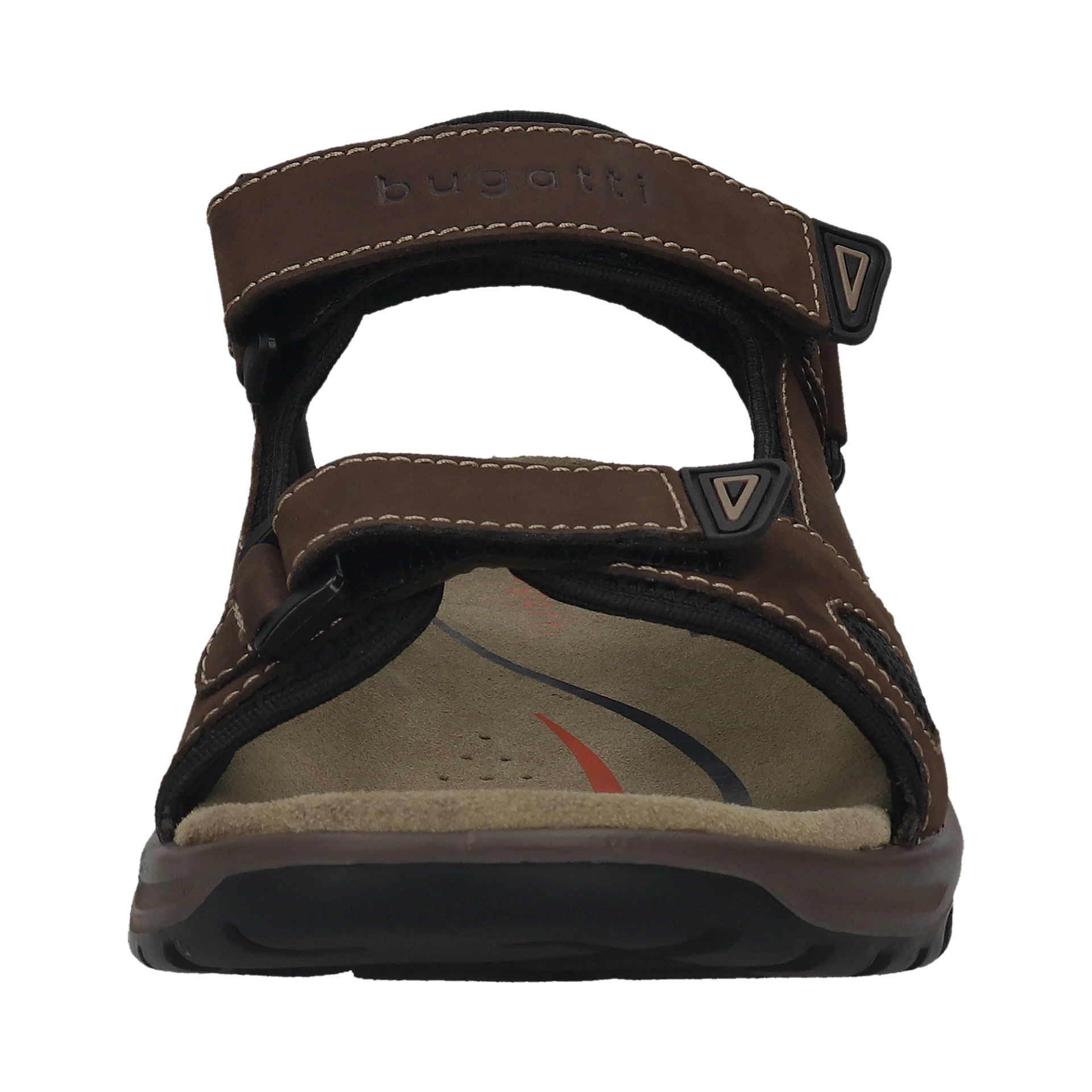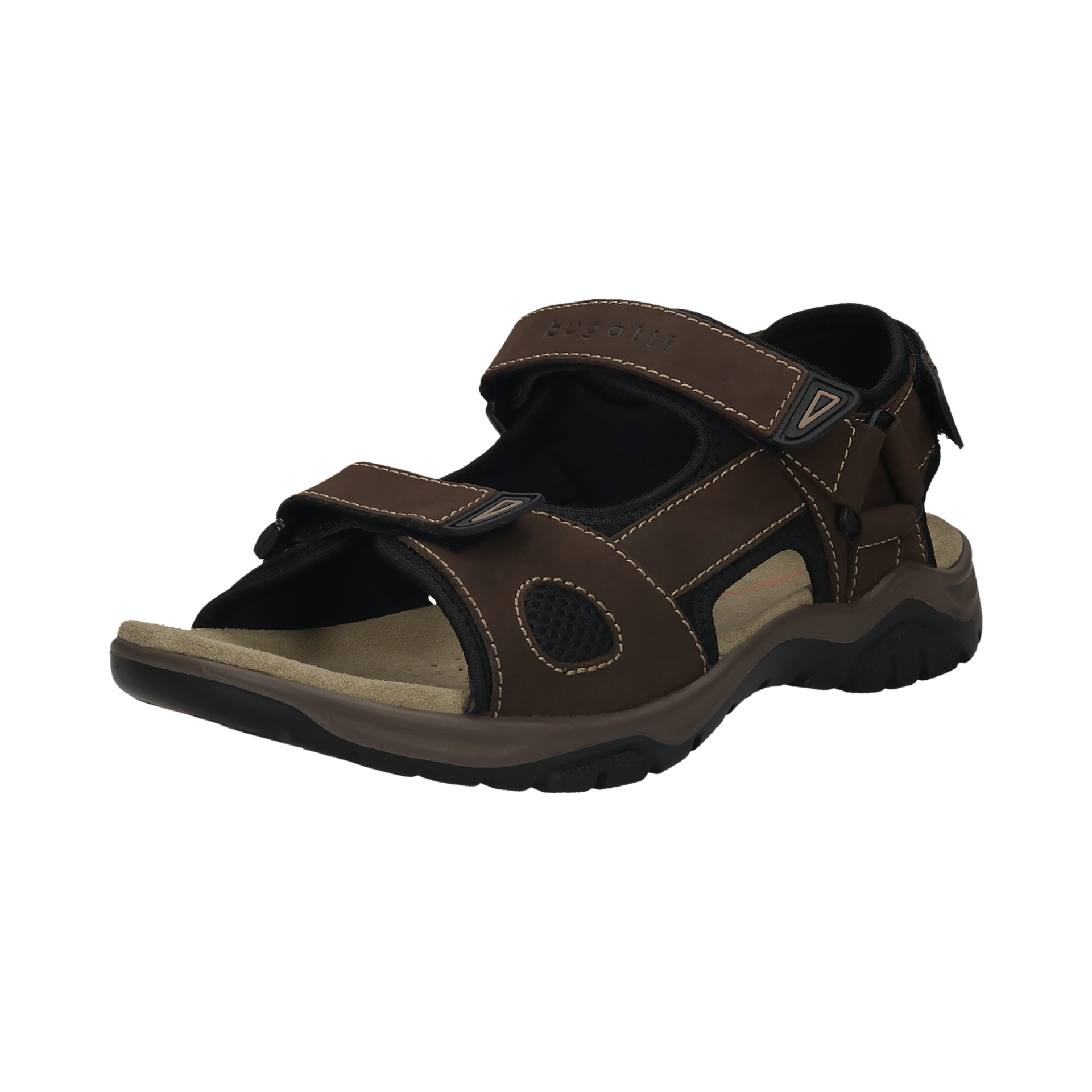 Тези мъжки сандали съчетават практичност и комфорт в класически дизайн, подходящ за активното ежедневие. Изработени от висококачествени материали в тъмнокафяв цвят с контрастни шевове, те осигуряват стабилност и издръжливост при всяка крачка. Регулируемите велкро каишки позволяват прецизно прилягане, а меката стелка и стабилната подметка гарантират удобство дори при продължително носене. Подходящи за разходки, пътувания или свободното време, тези сандали са отличен избор за мъже, които ценят функционалността без компромис със стила.